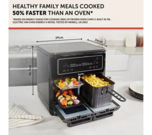 Why wait ages for dinner? This Swan dual air fryer, with its two 5.5 litre baskets, lets you cook different dishes at