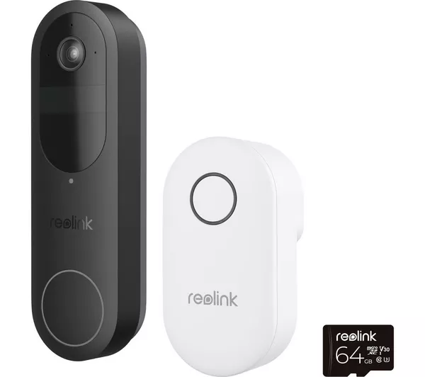 REOLINK D340B 2K Smart Video Doorbell, 64 GB Memory Card – Black & White